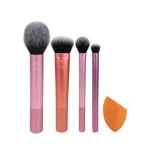 ست براش یک اسفنجی ریل تکنیک يكي از بهترين و كاربردیترين ست براشها است و مناسب استفاده شخصی و حتي حرفهای میباشد. علاوه بر ٤ براش عالی، دارای يک اسفنج فول سايز معروف نیز میباشد و با خريدن اين ست ديگر نيازی به خريدن اسفنج به صورت جداگانه نداريد. كاربرد اين ست براي زدن كرم پودر، كانسيلر، رژگونه، برنزر، پنكيک، هايلايتر، سايه چشم و … است. براشها بسيار با كيفيت و داراي تراكم عالی با موهای نرم هستند.
