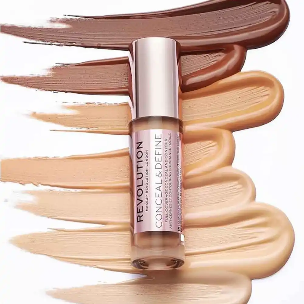 کانسیلر Conceal & Define رولوشن یک کانسیلر محبوب و پرفروش انگلیسی است که دارای بافتی سبک با قدرت پوشانندگی بالا بوده و برای انواع پوست مناسب است؛ این کانسیلر روی پوست ماندگاری بالایی دارد و رنگ و بافت خود را تا 16ساعت روی پوست حفظ میکند. تیرگی ها، لک ها و ناهمواری های اطراف چشم را پوشانده و ظاهری یکدست و روشن را به ارمغان میآورد. کانسیلر روولوشن دارای بافتی سبک و فینیش مات و مخملی است و روی پوست حالت کیکی ایجاد نمیکند. باعث انسداد منافذ نشده در نتیجه سبب ایجاد جوش و آکنه در پوست نمیشود.